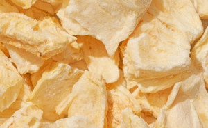 O ananás é colhidos no ponto certo e liofilizada a frio, num processo que retira apenas a água e preserva tudo o resto: cor, aroma e vitalidade.