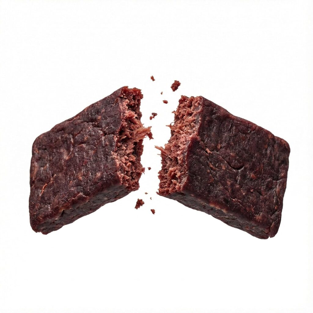 Carne bovina (98,7%), sal (1%), pimenta (0,3%). – Só isso! Uma barra de 40g é feita com 80g de carne bovina fresca.