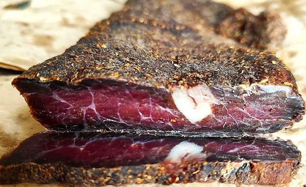 Usamos carne de bovino em corte inteiro, temperada apenas com sal, vinagre, especiarias selecionadas, deixada a secar lentamente ao ar.