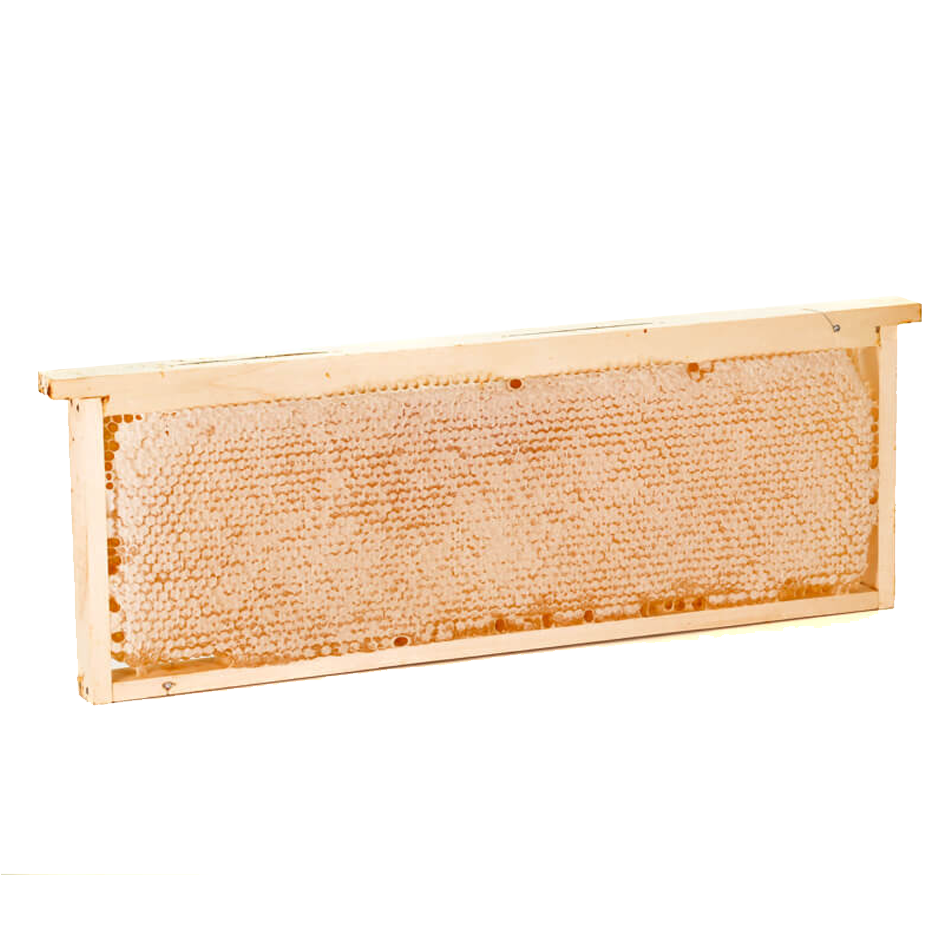 Ingrediente único: Favo de mel cru com quadro de madeira, 100% natural, sem aditivos.