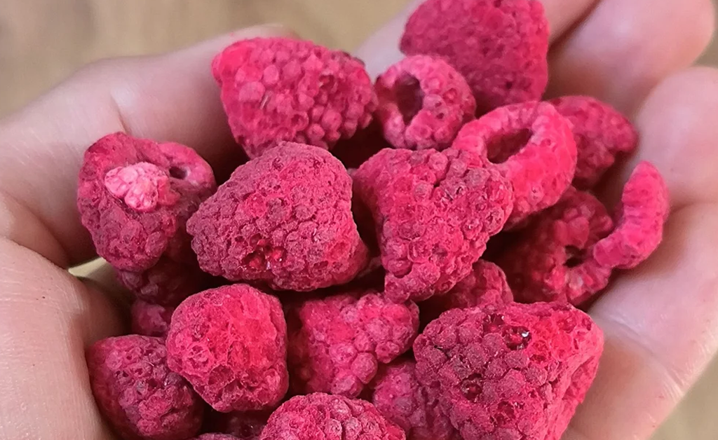 “Ricas em antioxidantes naturais e vitamina C, as framboesas liofilizadas oferecem uma fonte pura de energia rápida e leve, sem açúcar nem aditivos.