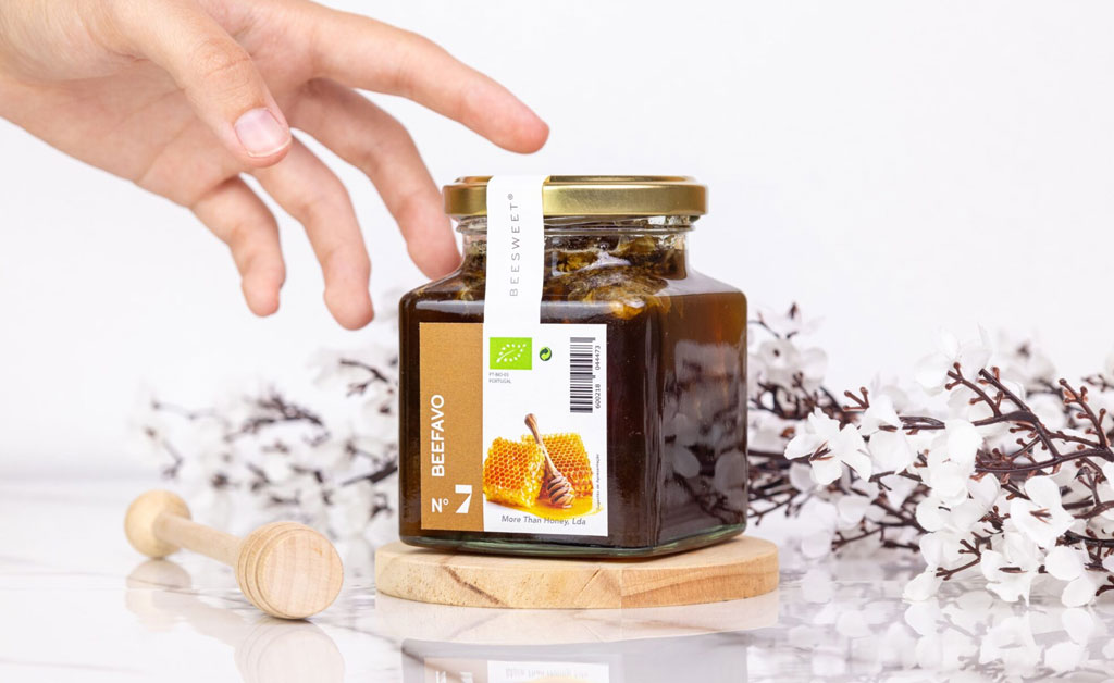 • Textura dupla (mel + favo) que preserva toda a bioatividade original da colmeia.